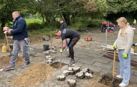 Nanu, was ist denn hier los? Überall wuseln Menschen auf dem Schulgelände der GLS, ausgestattet mit Werkzeug, Farbe und jeder …